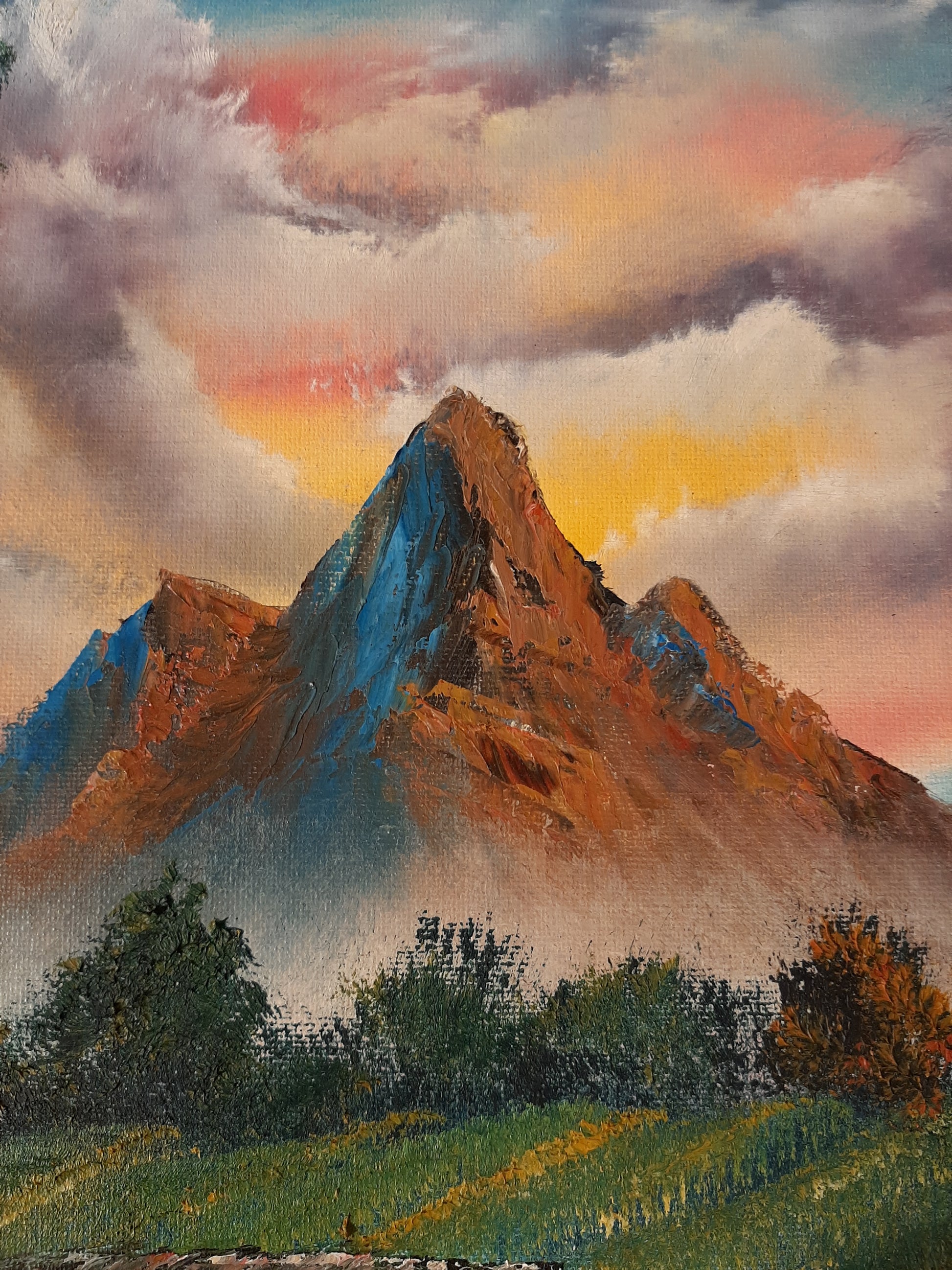 These landscape oil paintings are not prints. Painted on an acrylic primed pre-stretched canvas. They are painted using firm oil paints allowing for the proper application using the wet on wet technique, also known as Alla prima, also known as direct painting, or au premier coup, is a painting technique where wet paint is applied to wet paint, usually in a single sitting. The Italian phrase alla prima translates to "at first attempt". Which is why I love it and will always call it the"Bob Ross" style because of his inspiration to us All.